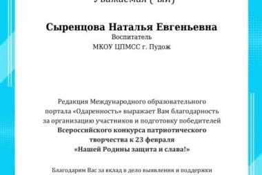 Всероссийский конкурс патриотического творчества "Нашей Родины защита и слава!"