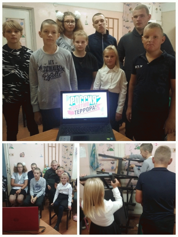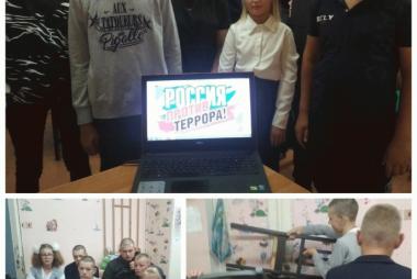 Тематическое занятие "Россия против террора" в рамках проведения Дня солидарности в борьбе с терроризмом с воспитанниками интерната Центра ПМСС (презентация, беседа, инструктаж, баррикадирование, минута молчания в память о жертвах трагедии Беслана)