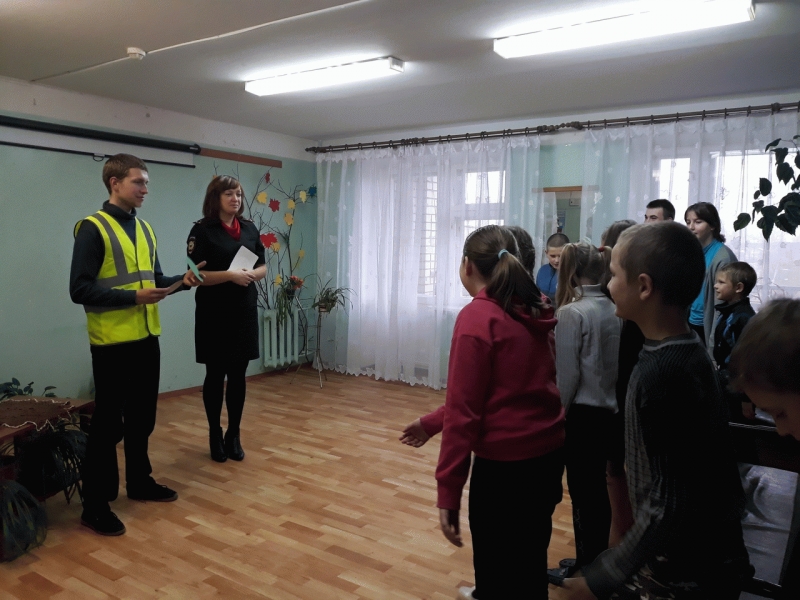 «Урок безопасности» с учащимися 1-9 классы провели инспектор ГИБДД и волонтеры «Лиги добра»