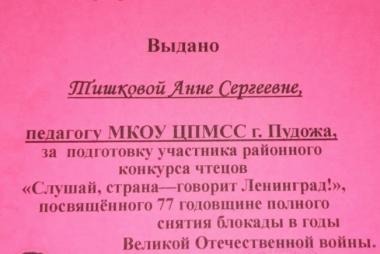 чтецов "Слушай, страна - говорит Ленинград!", посвященного 77-й годовщине полного освобождения города от блокады в годы Великой