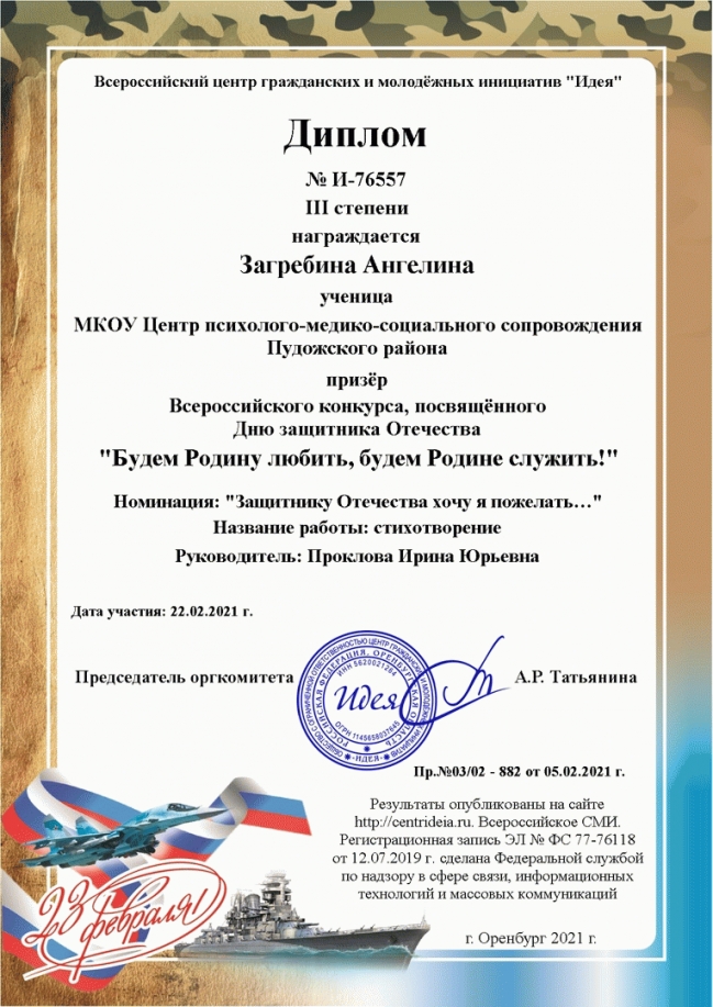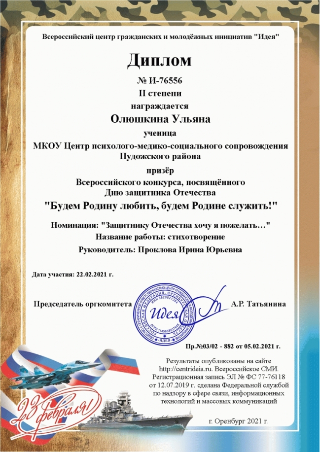 Подведены Итоги Всероссийского конкурса, посвящённого Дню защитника Отечества «Будем Родину любить, будем Родине служить!».