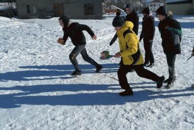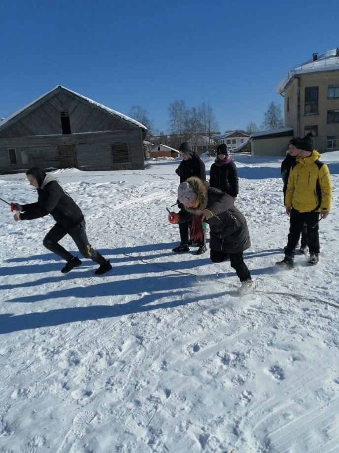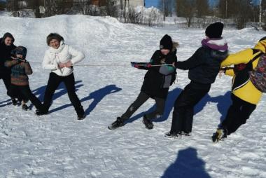 «Зимнее суши», «Волшебное кольцо», «Деревенский хоккей», «Кубик на ракетке», «Прыжки с мячом», «Снежный ком», «Переправа» и «Метание тарелочек». Со всеми заданиями ребята успешно справились. А завершающим испытанием стало перетягивание каната, где в упорном противостоянии победа каждый раз переходила от одной команды к другой. В итоге победила ДРУЖБА!