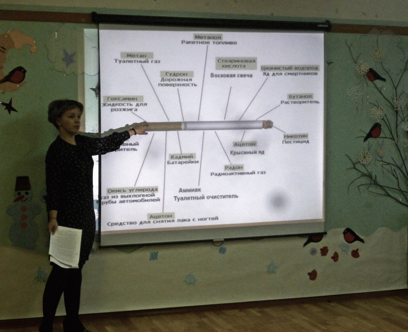 Копотина Светлана Сергеевна раскрыли историю появления табака, причины курения и его последствия, познакомили учащихся с фактами,