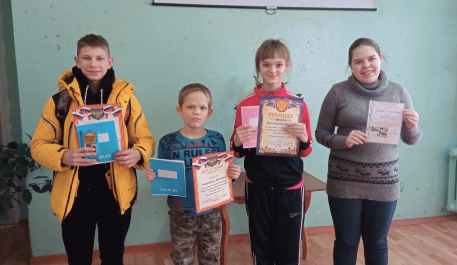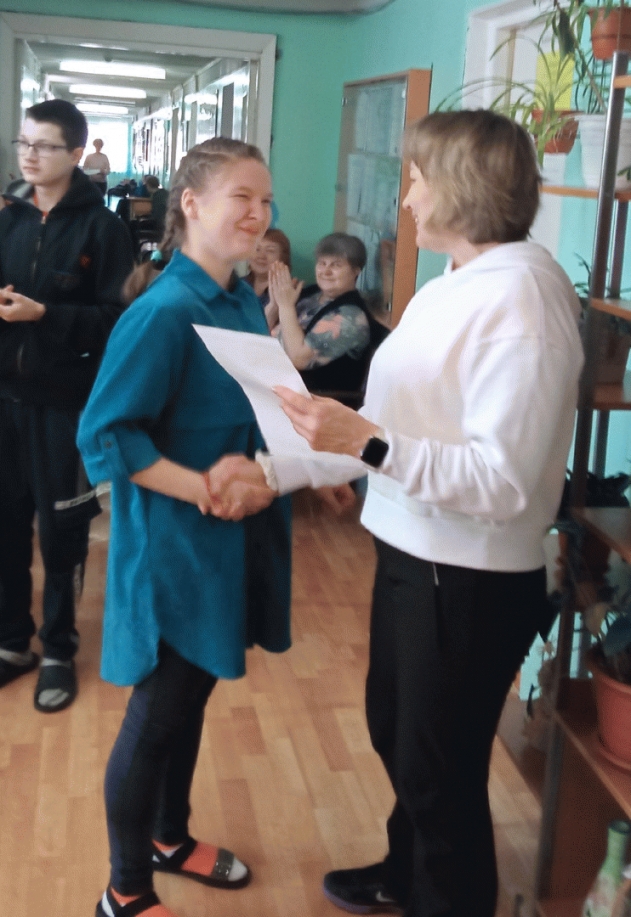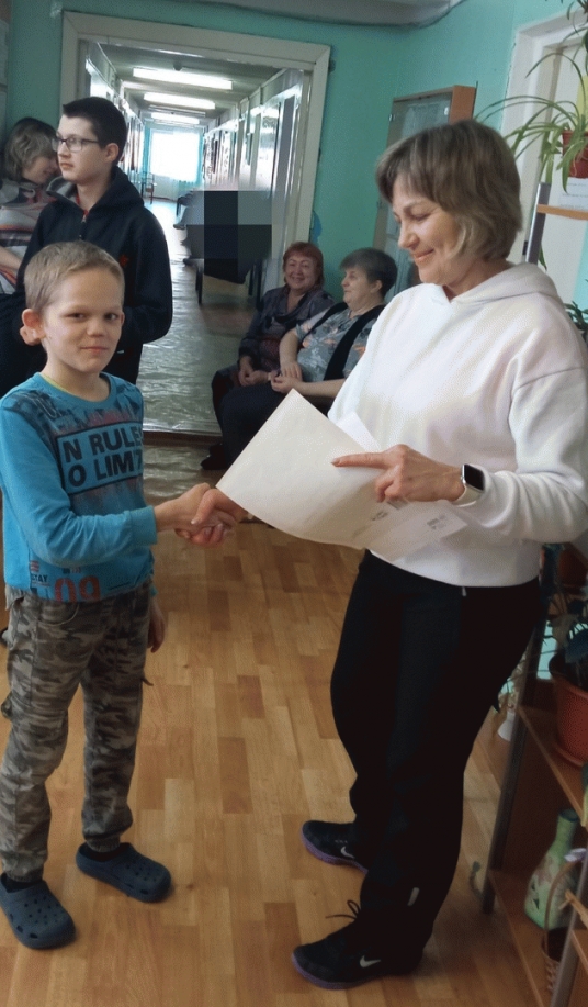 На внутришкольной линейке, в присутствии всех обучающихся и работников Центра ПМСС, поздравили наших спортсменов, участников Всероссийских зимних спортивных соревнований. От Центра ПМСС обучающимся Алексею и Михаилу М., Евгению Ч., Ангелине З., Карине М., Ивану Ш., Максиму К вручены Грамоты и призы за участие в соревнованиях, учителю физической культуры Пахомовой Виктории Владимировне - Благодарственное письмо за подготовку спортсменов, личное участие и победу (1 место) в соревнованиях.