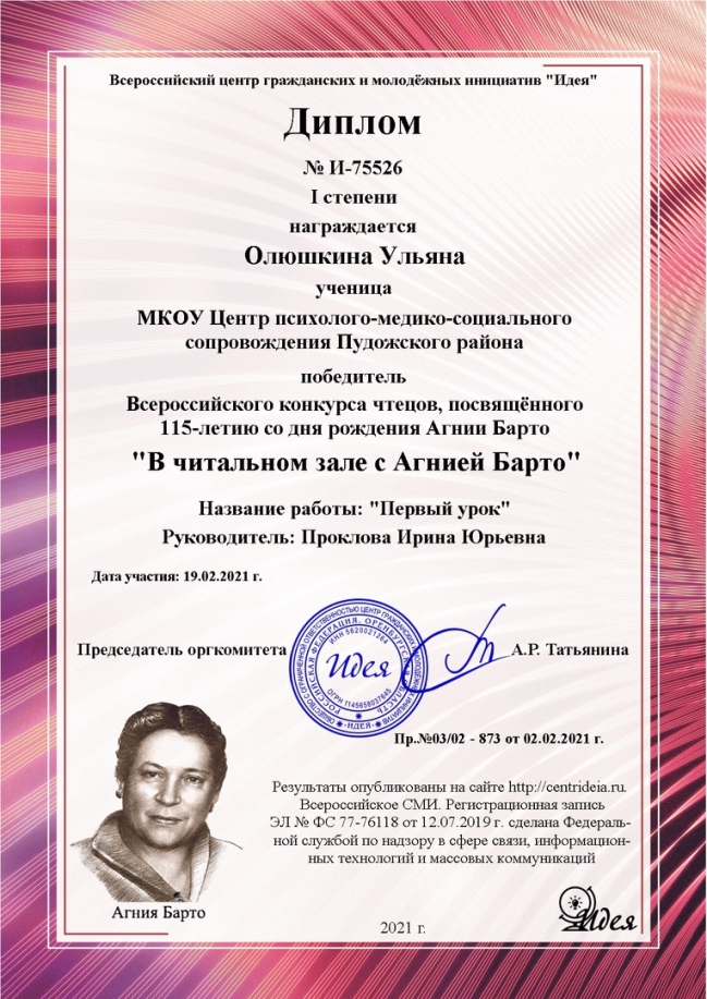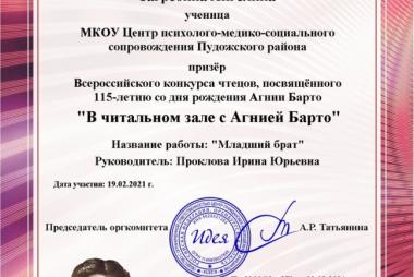 с Агнией Барто». По тогам конкурса наши обучающиеся заняли призовые места.