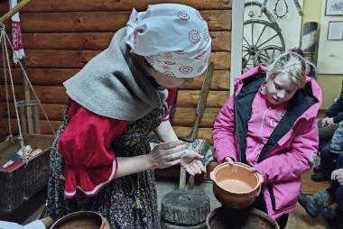 17 ноября сотрудниками Пудожского историко-краеведческого музея им. А.Ф. Кораблева было проведено интерактивное занятие «Вот вам сказка, а мне бубликов связка» по мотивам пудожских сказок с использованием предметного ряда из фондов музея. Обучающиеся взвешивали, пряли, переливали да тесто взбивали.