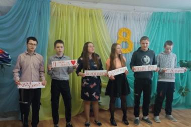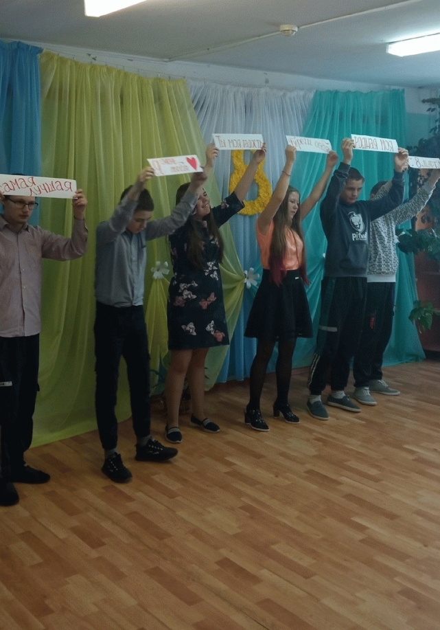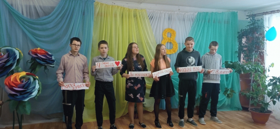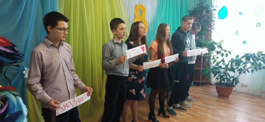 По завершению квест-игры "С 8 марта" для наших девочек прошел мини-концерт. Учащиеся Дима И, Максим К, Полина Е, Яна К. рассказали стихи, посвященные мамам. Выпускники 9 класса исполнили песню "О маме".