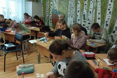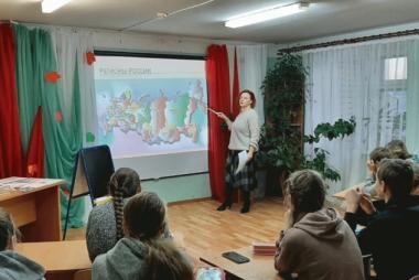 Урок начался торжественно – прозвучал гимн РФ. В ходе мероприятия обучающиеся знакомились с национальными костюмами, ремеслами, кухней малых народов России. Интересными и полезными были работа с картой, разрезными картинками и словами. Игровой момент – состязание команд в игре «Палка» - запомнился всем присутствующим своим азартом и соревновательным духом. На протяжении всего занятия звучали народные песни. В завершение урока обучающиеся раскрасили национальные костюмы и обобщили полученные знания.