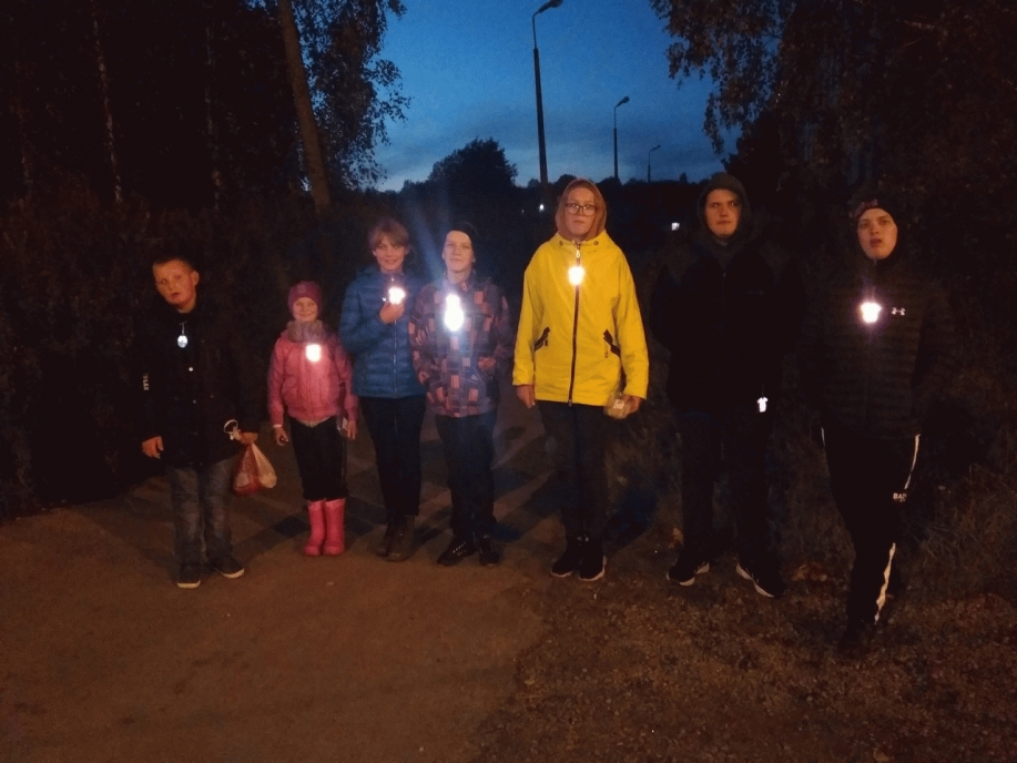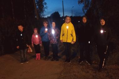 Воспитатель рассказала историю создания светоотражающих элементов, познакомила ребят с понятием "фликер", а в ходе вечерней прогулки дети ещё раз закрепили полученные знания.