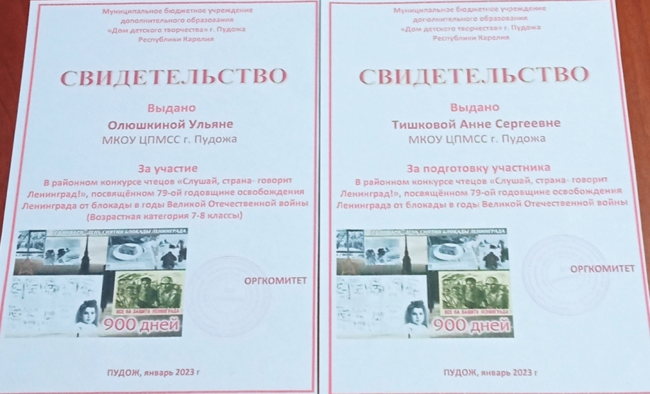 Ульяна О., обучающаяся 9 класса Центра ПМСС, приняла участие в районном конкурсе чтецов "Слушай страна, говорит Ленинград!", посвященном 79-ой годовщине освобождения Ленинграда от блокады в годы Великой Отечественной войны.