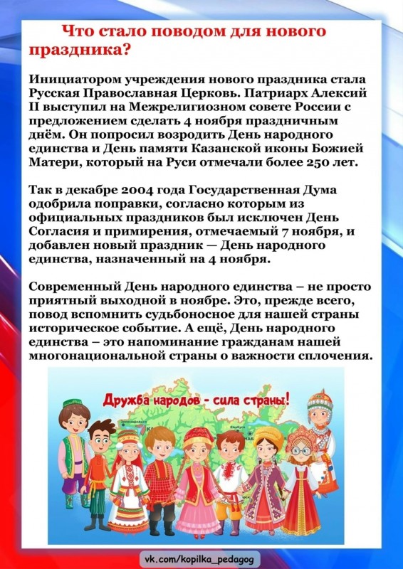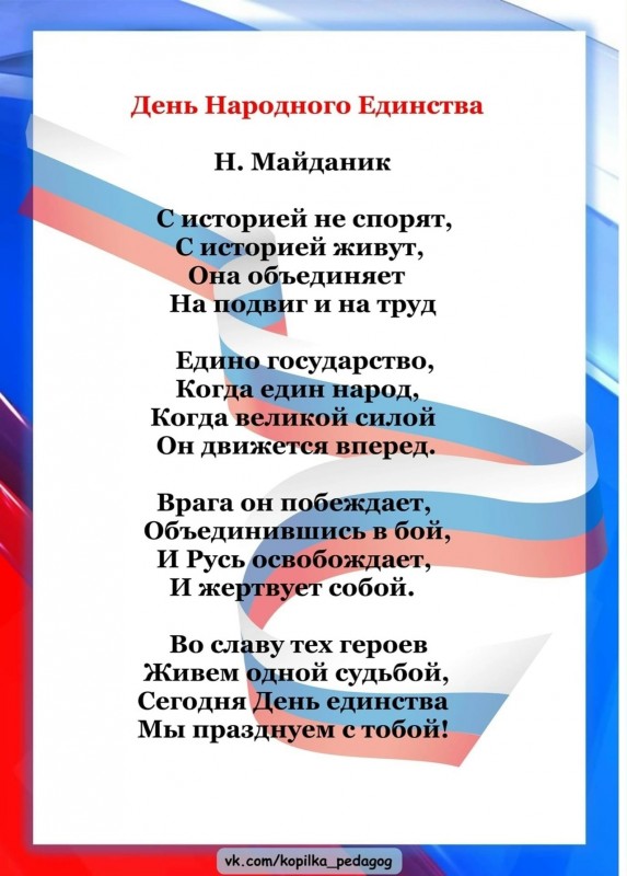 День народного единства – это праздник, который напоминает нам, что наша сила заключается в дружбе и сплоченности, мы часть большой многонациональной страны. Мы все несем ответственность за настоящее и будущее России.