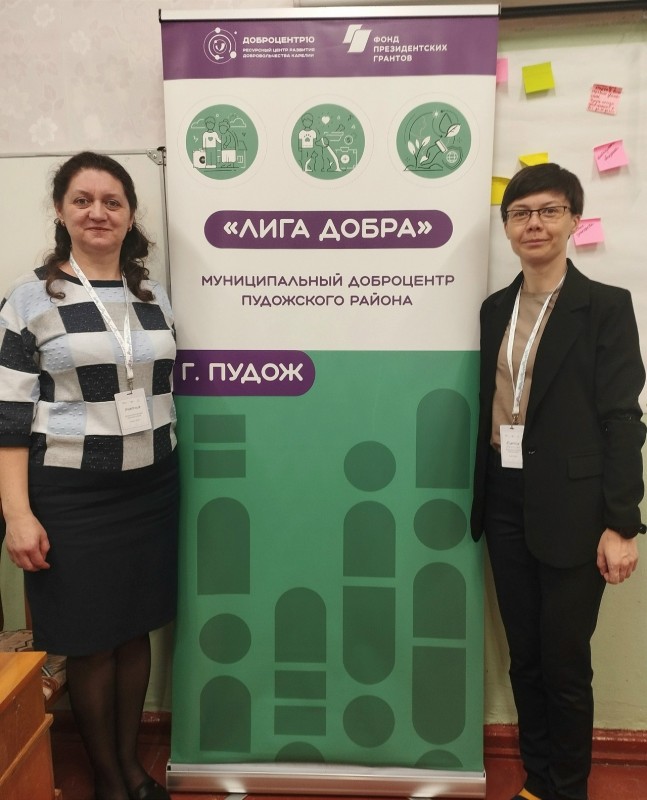 31 марта 2026 года директор МКОУ Центра ПМСС Пудожского района Наталья Владимировна Мартяшкова и воспитатель Наталья Евгеньевна Сыренцова приняли участие в Муниципальном Добровольческом Форуме.