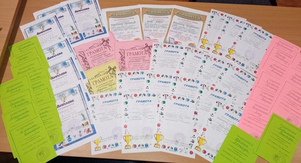 Учитель физической культуры Виктория Владимировна Пахомова подвела итоги Всероссийского мероприятия "День ходьбы - 2025" и общешкольных спортивных мероприятий "Троеборье" и "Пятиборье", вручила грамоты победителям за 1,2 и 3 места.