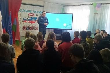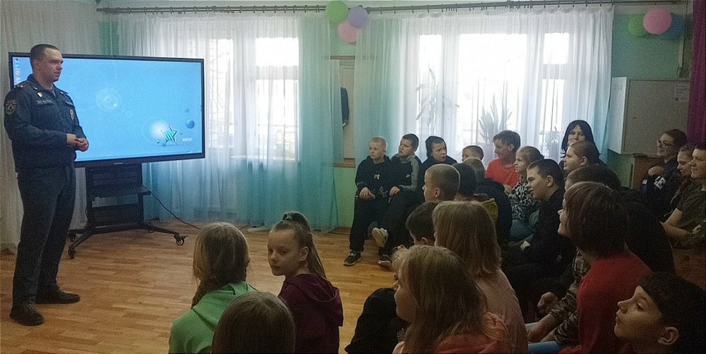 Дознаватель ОНДиПР по Медвежьегорскому и Пудожскому районам Пудров Иван Юрьевич рассказал обучающимся о противопожарной безопасности в быту и на улице. Особое внимание уделил запрету сжигания сухой травы в весенне-летний период. Подробно разобрал с детьми их действия в случае возникновения пожара.