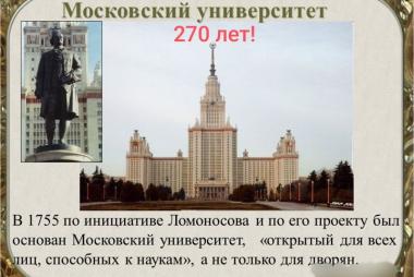 25 января 1755 года состоялось открытие Московского государственного университета (сокр. МГУ).
