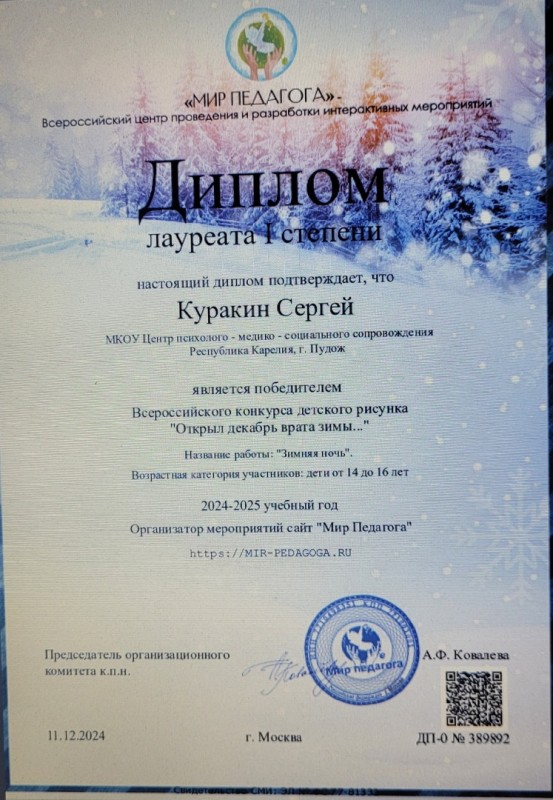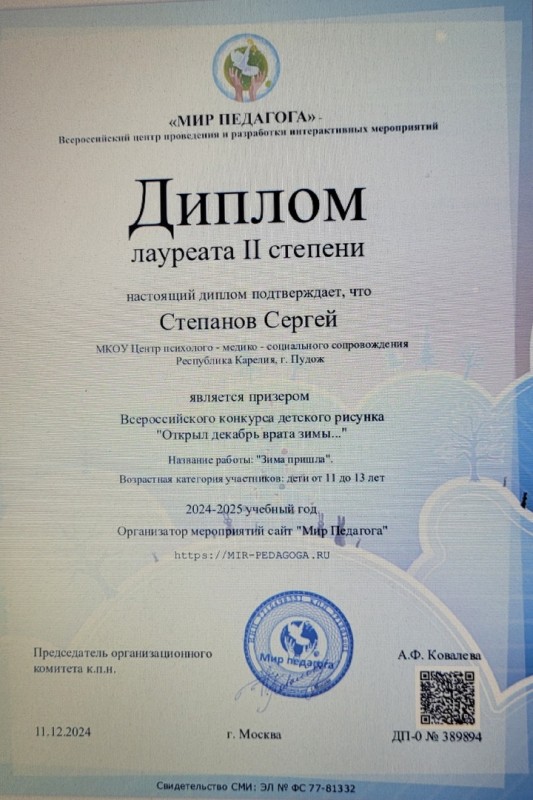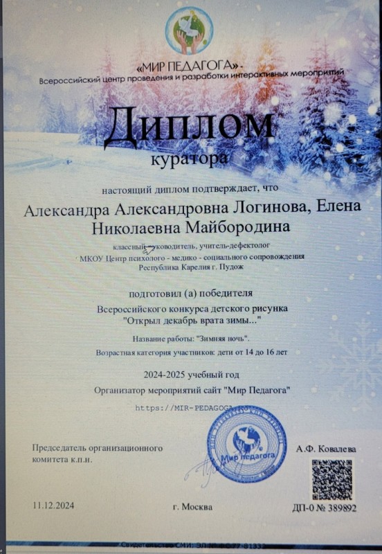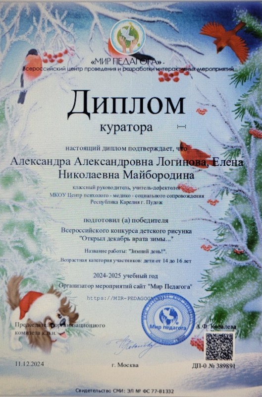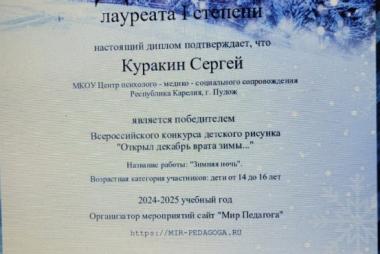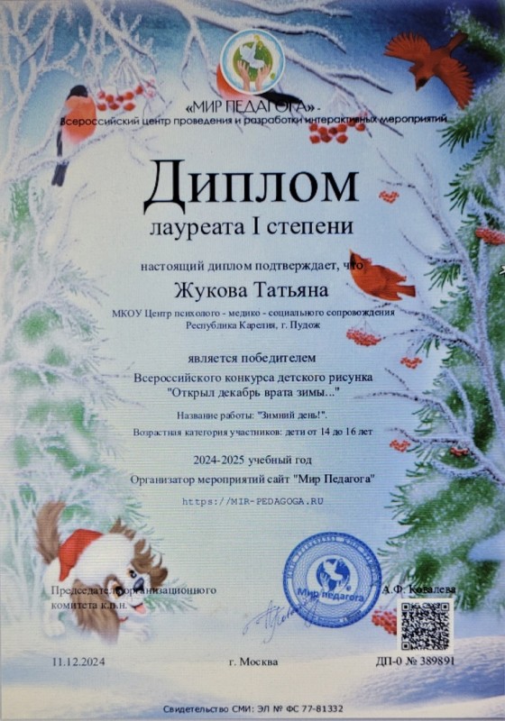 Обучающиеся Центра ПМСС приняли участие во Всероссийском конкурсе детских рисунков "Открыл декабрь врата зимы".